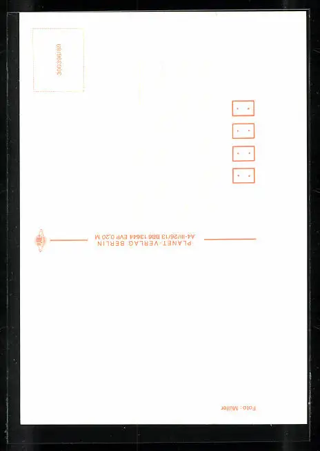 Personenbezogene Daten auf der Rückseite der Karte wurden durch blauen Textmarker unkenntlich gemacht. Die blauen Stellen sind auf die Vorderseite durchgeweicht und wirken sich negativ auf das Postkartenfoto aus