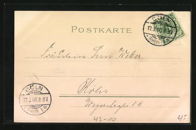 alte Ansichtskarte, gelaufen 1900, guter Zustand