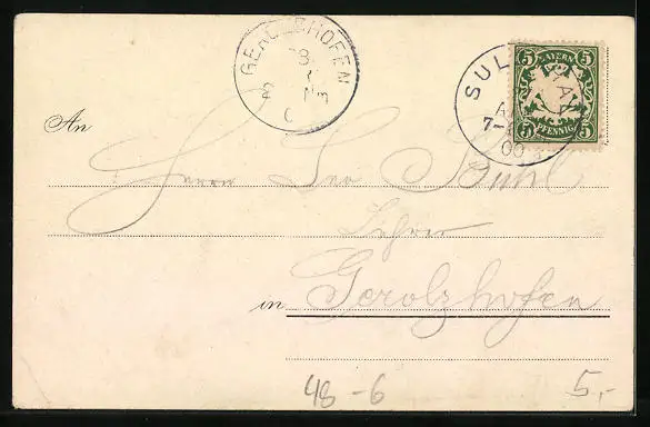 alte Ansichtskarte, gelaufen 1900, Eckknick re. unten, guter Zustand