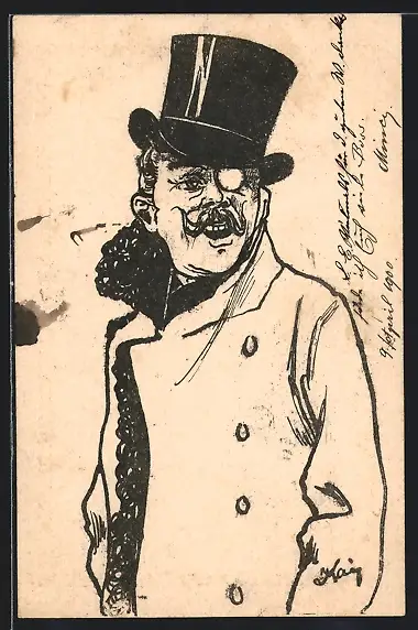 AK Herr im Mantel mit Monokel, Optik