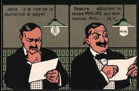 AK Herr liesst Brief klarer unter Philips Lampe, Reklame
