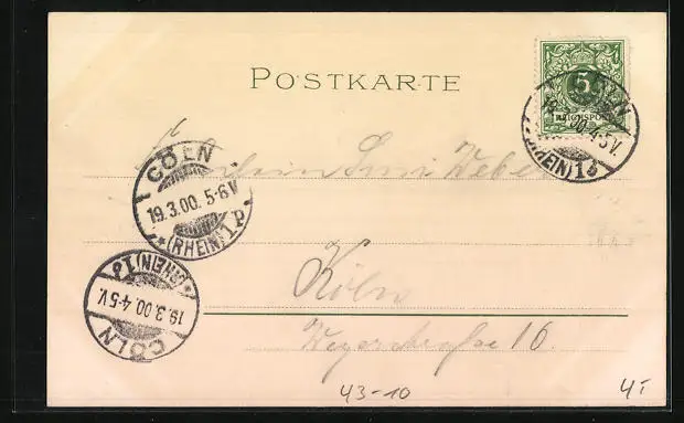alte Ansichtskarte, gelaufen 1900, guter Zustand