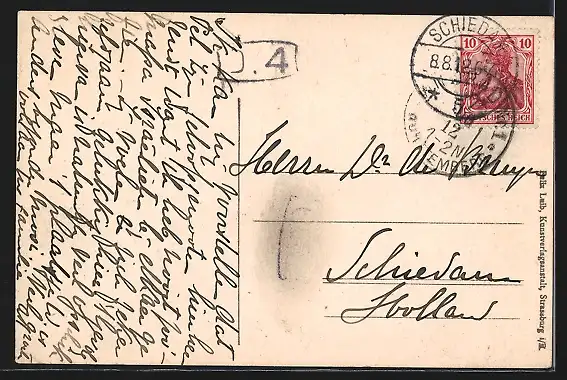 alte Ansichtskarte, gelaufen 1912, Eckknick re. unten, guter Zustand