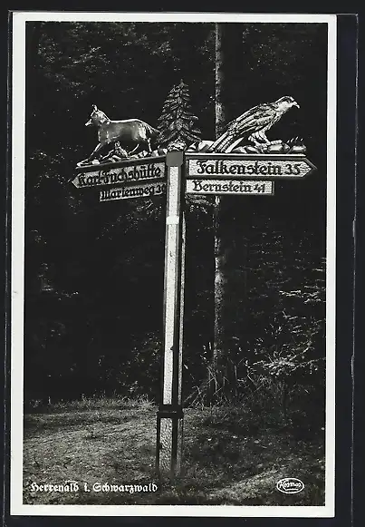 AK Herrenalb / Schwarzwald, Partie am Wegweiser