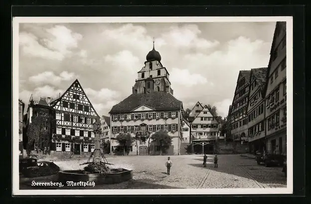 AK Herrenberg, Marktplatz mit Brunnen