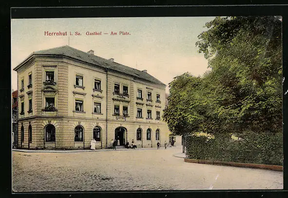 AK Herrnhut i. Sa., Am Platz mit Gasthof