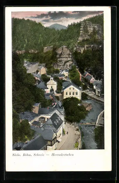 AK Herrnskretschen /Sächs. Böhm. Schweiz, Panorama