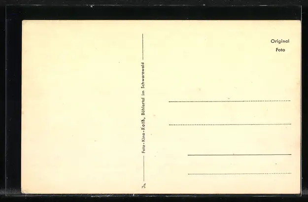 Personenbezogene Daten auf der Rückseite der Karte wurden durch blauen Textmarker unkenntlich gemacht. Die blauen Stellen sind auf die Vorderseite durchgeweicht und wirken sich negativ auf das Postkartenfoto aus