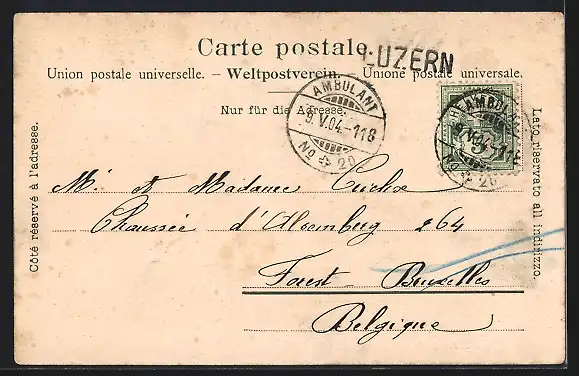 alte Ansichtskarte, gelaufen 1904, Stempelspur, guter Zustand