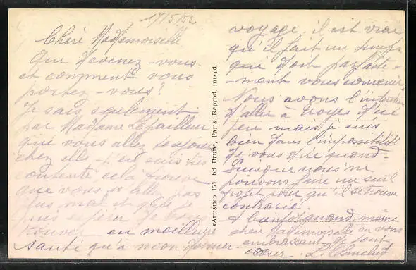 ungelaufen, Rückseite beschrieben 1952, leichter Bug re. oben, sonst guter Zustand