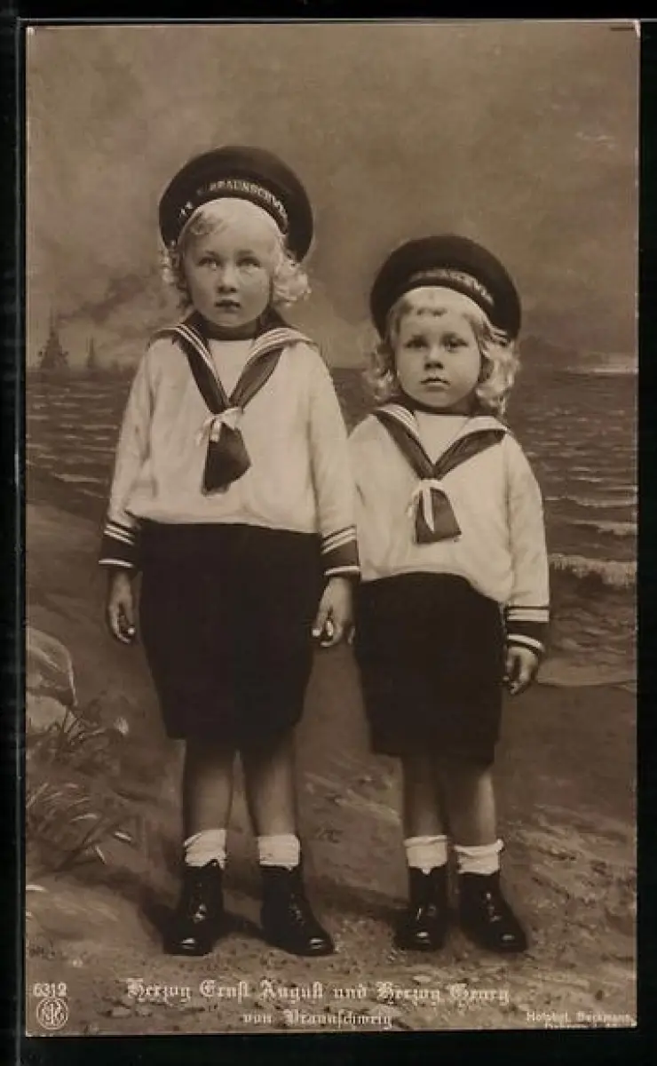 AK Herzog Ernst August und Herzog Georg von Braunschweig mit Mützenbändern der S.M.S. Braunschweig