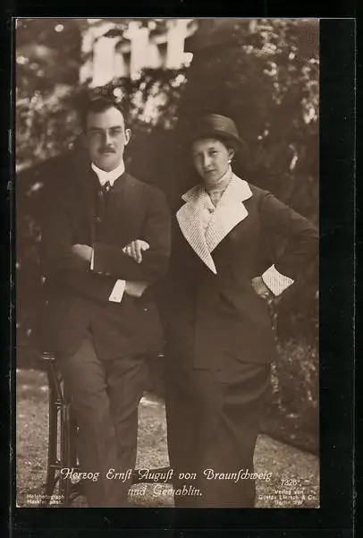 AK Herzog Ernst August von Braunschweig im Anzug mit seiner Gemahlin