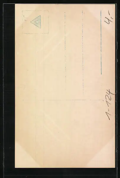 Personenbezogene Daten auf der Rückseite der Karte wurden durch blauen Textmarker unkenntlich gemacht. Die blauen Stellen sind auf die Vorderseite durchgeweicht und wirken sich negativ auf das Postkartenfoto aus
