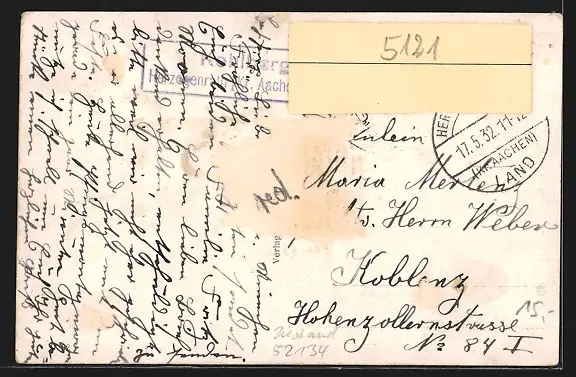 gelaufen 1932, rückseitig Klebe- und Papierreste, rückseitig Oberflächenschaden, guter Zustand