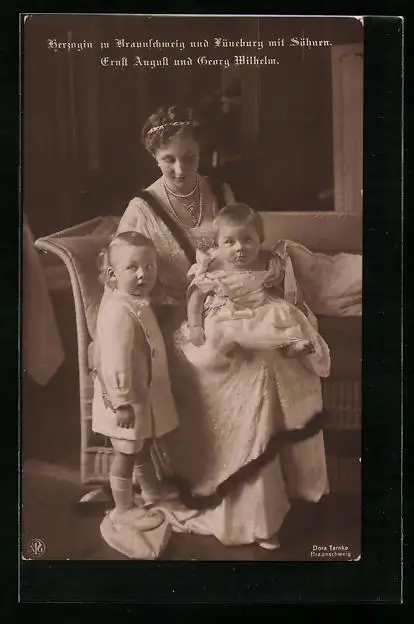 AK Herzogin von Braunschweig mit Söhnen