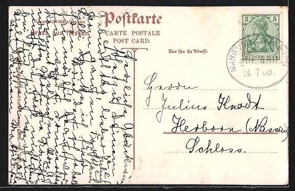 alte Ansichtskarte, gelaufen 1908, guter Zustand