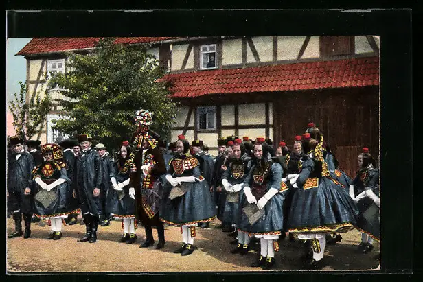 AK Hessisches Brautpaar wird von den Brautführern in die Kirche geführt