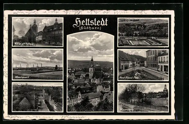AK Hettstedt /Südharz, Messingwerk, Stadtbad, Markt mit Rathaus