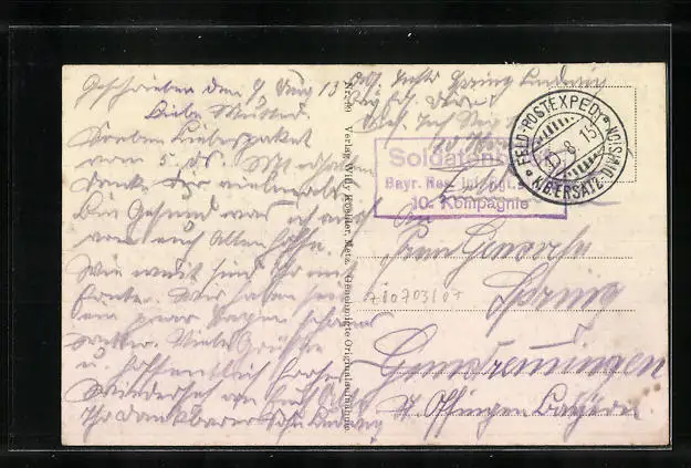 alte Ansichtskarte, gelaufen als Feldpost 1915, guter Zustand