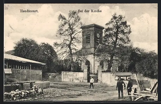 AK Heudicourt, Strassenpartie an der Kirche