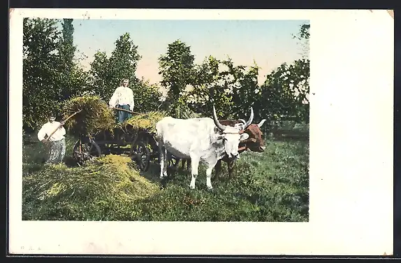 AK Heuernte mit Ochsen-Gespann