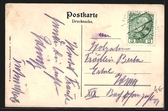 alte Ansichtskarte, gelaufen 1910, Eckknicke oben, guter Zustand