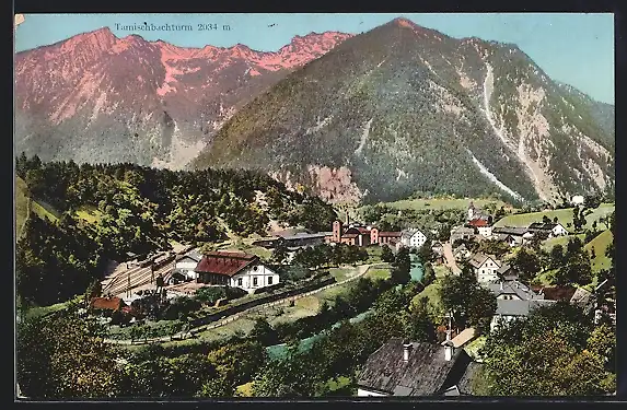 AK Hieflau, Ortsansicht mit Tamischbachturm