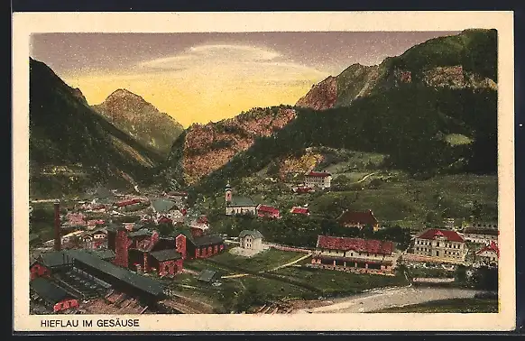 AK Hieflau im Gesäuse, Panorama mit Kirche