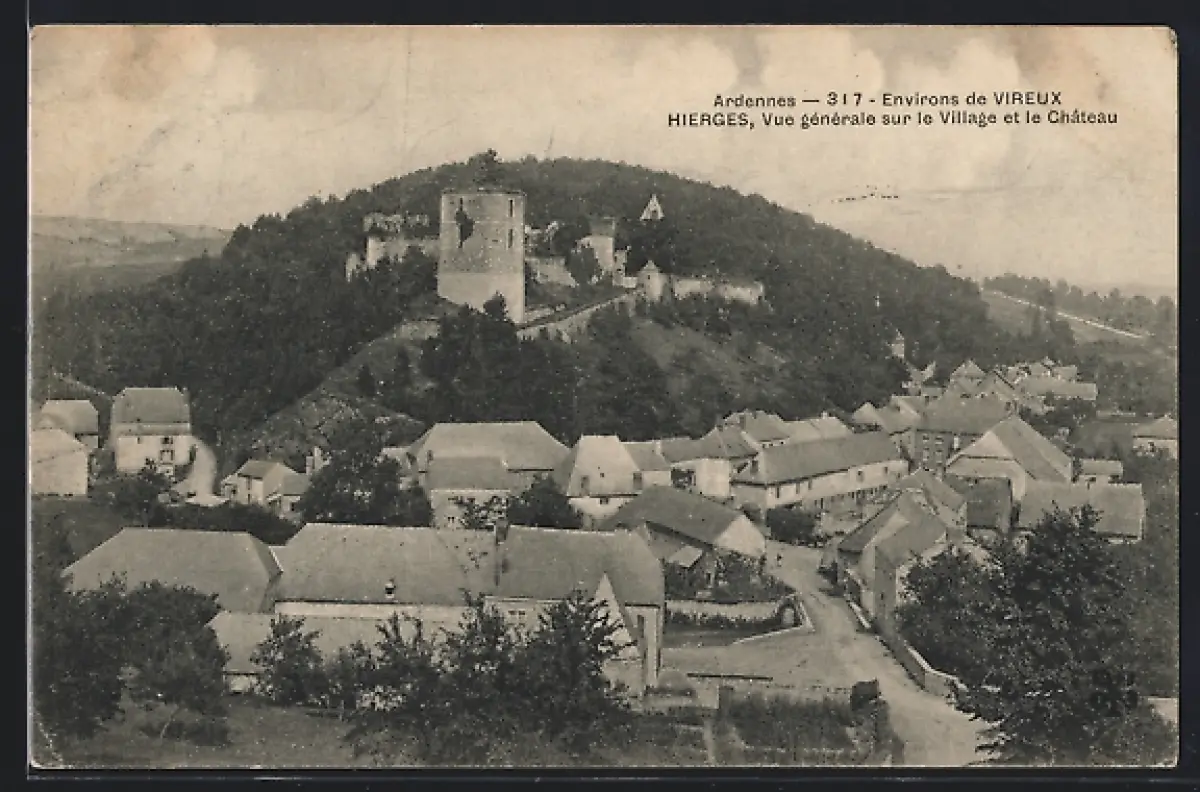 AK Hierges /Ardennes, Vue générale sur le Village et le Château