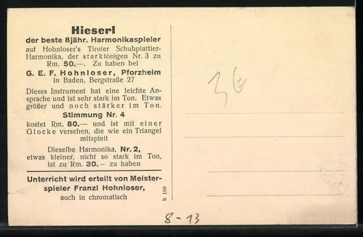 AK Hieserl, der beste 8jähr. Harmonikaspieler, Musiker