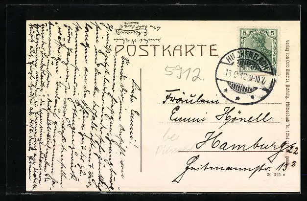 alte Ansichtskarte, gelaufen 1912, Stempelspur, guter Zustand