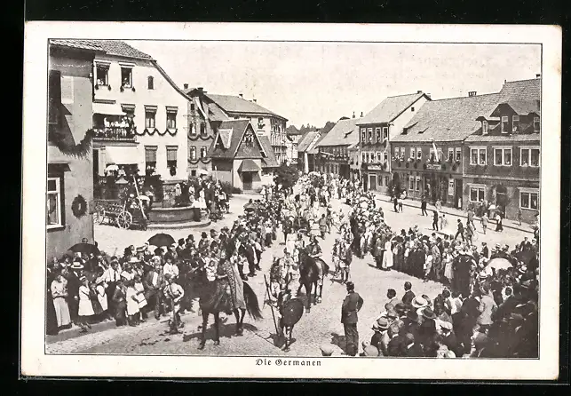 AK Hildburghausen, Festzug, Einmarsch der Germanen am Markt