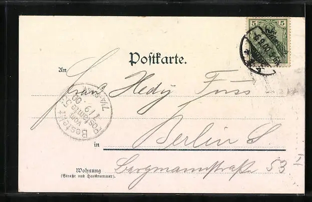 alte Ansichtskarte, gelaufen 1900, Albumspuren, Stempelspur, guter Zustand