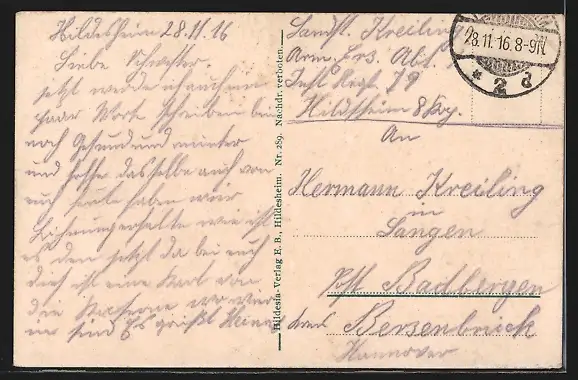 alte Ansichtskarte, gelaufen 1916, Stempelspur, guter Zustand