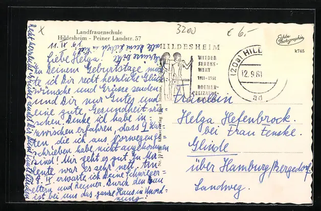 alte Ansichtskarte, gelaufen 1961, Briefmarke entfernt, Briefmarke entfernt, guter Zustand