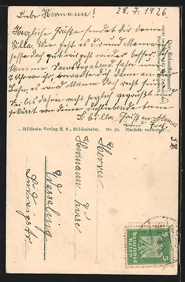 alte Ansichtskarte, gelaufen 1926, guter Zustand
