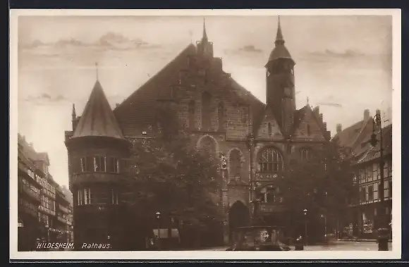 AK Hildesheim, Rathaus und Brunnen auf dem Vorplatz