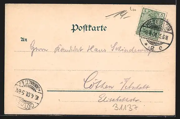 alte Ansichtskarte, gelaufen 1901, guter Zustand