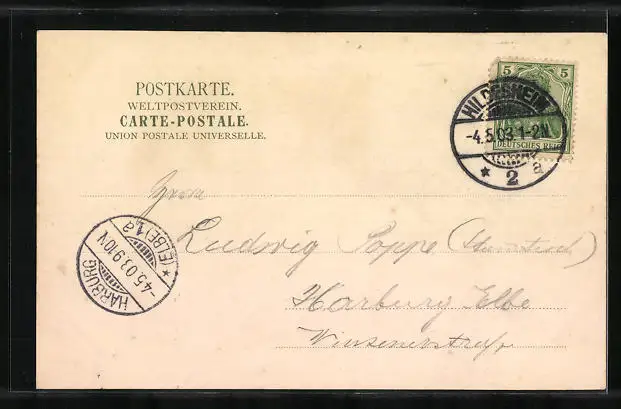 alte Ansichtskarte, gelaufen 1903, Albumspuren, guter Zustand