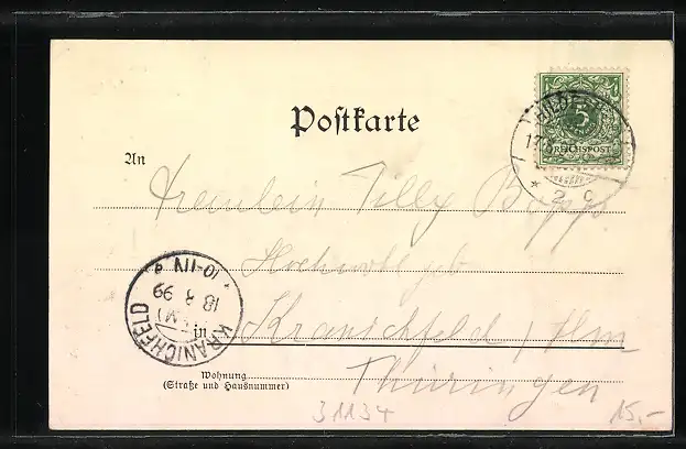 alte Ansichtskarte, gelaufen 1899, Stempelspur, guter Zustand