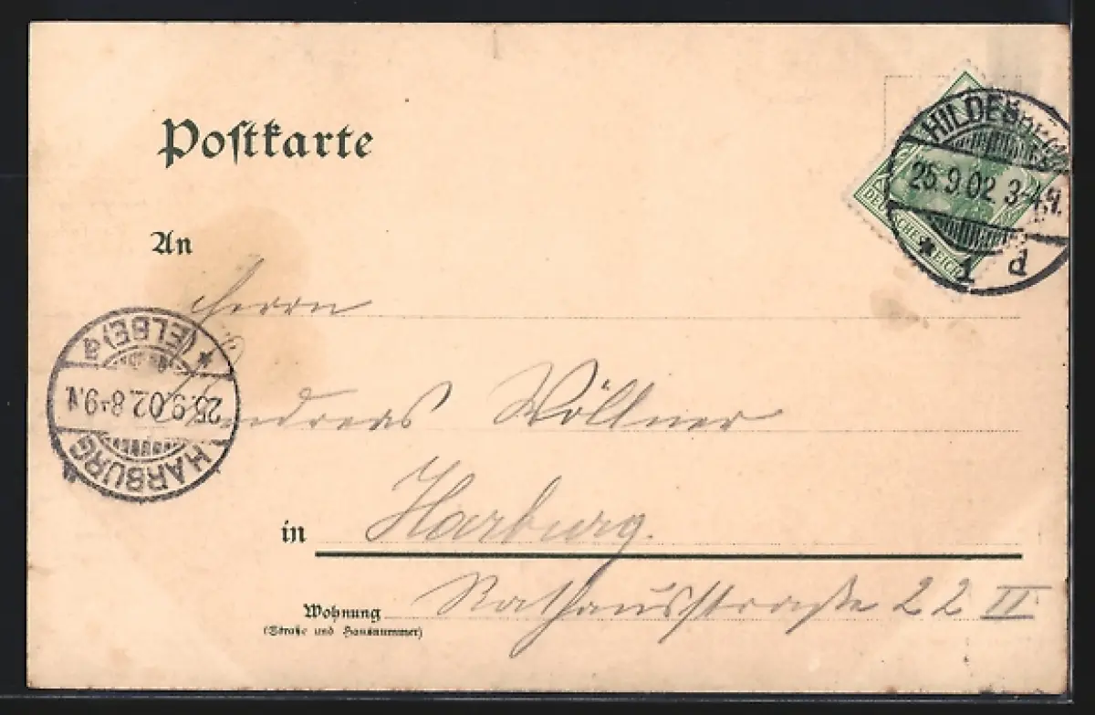 alte Ansichtskarte, gelaufen 1902, Stempelspur, guter Zustand