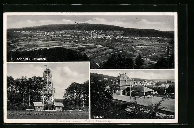 AK Hillscheid, Ortspanorama, Bahnhof aus der Vogelschau