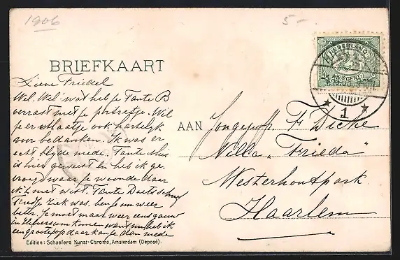 alte Ansichtskarte, gelaufen 1906, Eckknick oben re., guter Zustand