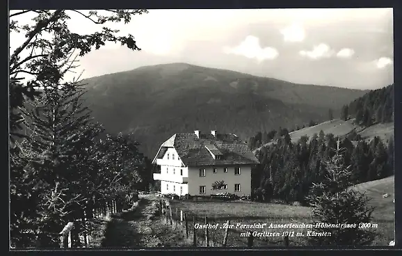 AK Himmelberg /Kärnten, Ausserteuchen, Gasthof zur Fernsicht, Ansicht mit Gerlitzen
