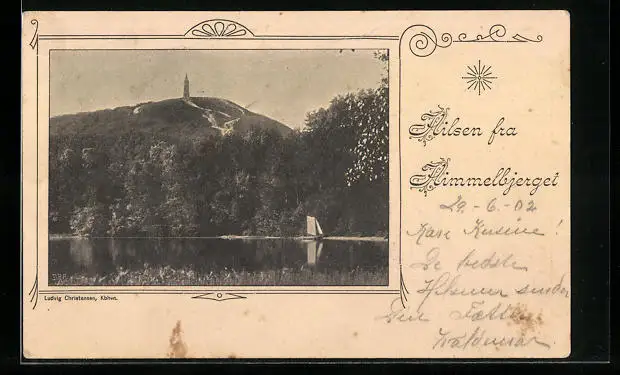 AK Himmelbjerget, Ortspartie mit See und Berg