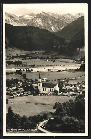 AK Hindelang /Bayr. Allgäu, Ortspartie mit Kirche