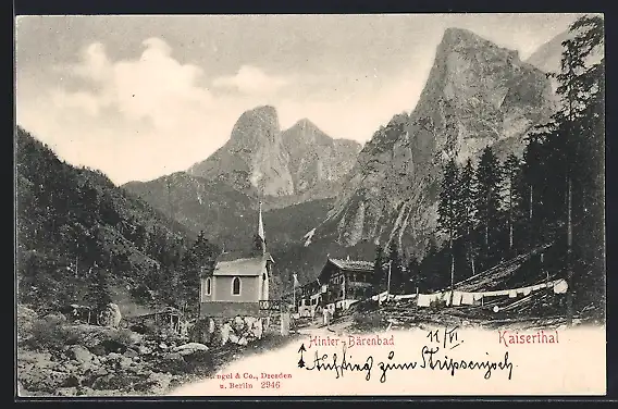 AK Hinter-Bärenbad, Gesamtansicht mit Kirche im Kaiserthal