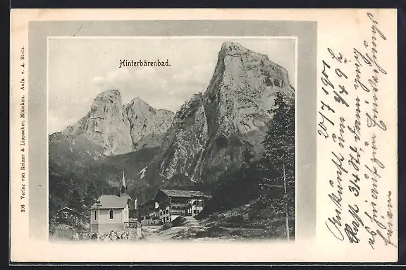 AK Hinterbärenbad, Ortsansicht unter Felsformationen