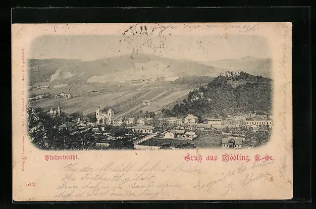 AK Hinterbrühl, Mödling, Totalansicht mit Kirche und Umgebung