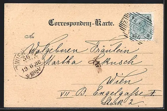 alte Ansichtskarte, gelaufen 1900, Stempelspur, guter Zustand